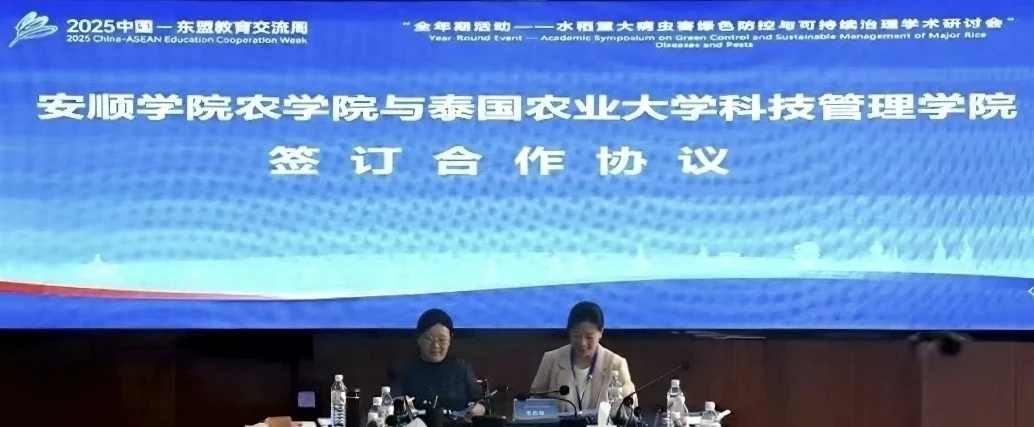 安顺学院农学院党委书记施缈筱与泰国农业大学管理科技学院代表杨帆签署了合作协议,标志着双方在农业科技与教育领域的合作进入实质性阶段。