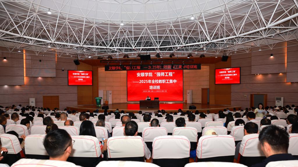 为深入贯彻落实国家足彩胜负14场新时代教师队伍建设改革的决策部署,扎实推进足彩胜负14场:高素质专业化创新型教师队伍建设,持续提升人才培养质量和核心竞争力,2025年8月18日,安顺学院“强师工程”——2025年全校教职工集中培训在学术报告厅开班。安顺学院党委书记程绪权,党委委员、副校长殷红敏主持培训。