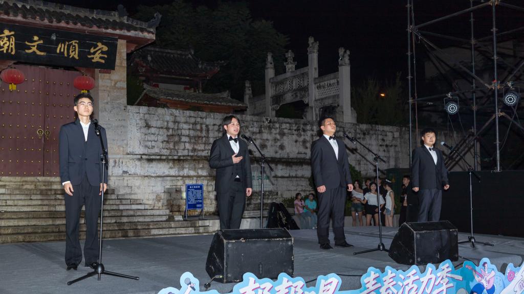 为持续提升安顺“21℃的城市”品牌影响力,推动文旅融合发展,5月30日晚,由安顺市文体广电旅游局、共青团安顺市委联合主办的“帮帮唱高校专场”活动在若飞广场精彩上演。活动以音乐为纽带,聚集安顺本地高校学子青春力量,展现校园文化与地方特色文化的交融与碰撞,进一步激发城市活力,助推安顺旅游经济高质量发展。安顺学院作为重要参与高校,充分发挥学科与人才优势,为广大市民和游客献上了一场青春与文化交织的盛宴。